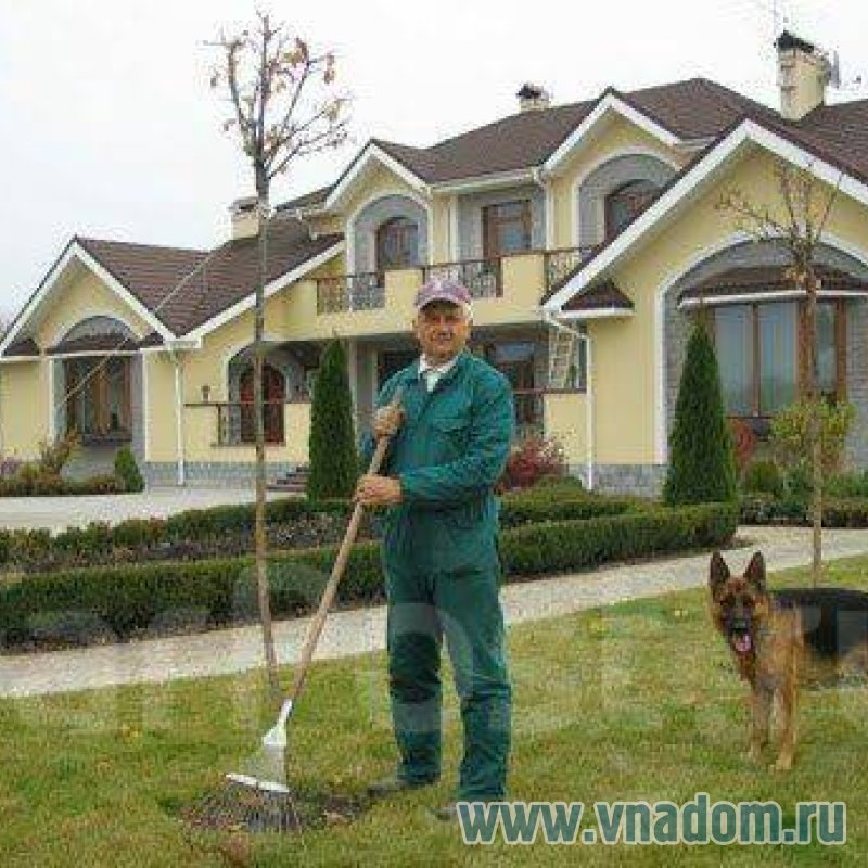 Обязанности: Уход за прилегающей территорией (уборка двора, листьев, снега, уход за газоном и растениями).